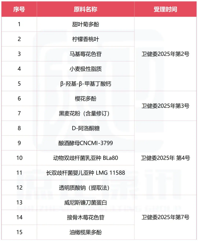 2025年,在国家卫生健康委员会陆续发布的多份公告中,正式批准了15种新食品原料。
